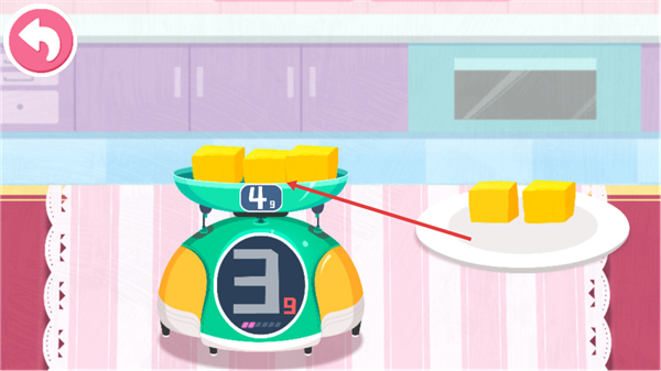 4、将方块食材放入秤上容器,让秤显示4g,完成该步材料准备。