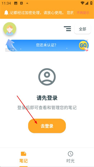 1、在成友笔记首页点击去登录按钮,进入登录页面。