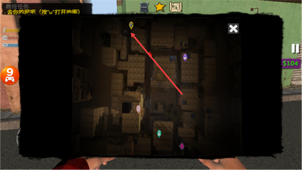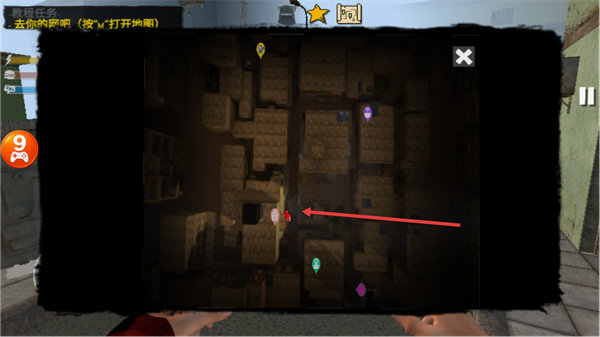3、再次打开地图,确认网吧的目标位置,调整行进方向。
