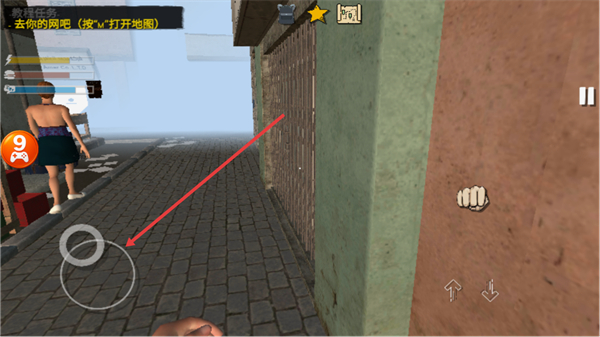 2、操控角色沿街道移动,向地图指示的网吧方向行进。