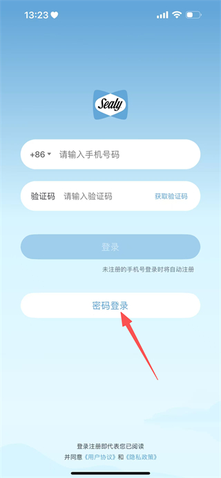 2、在丝涟智能生活登录页面,点击密码登录选项,切换至密码登录的操作界面。