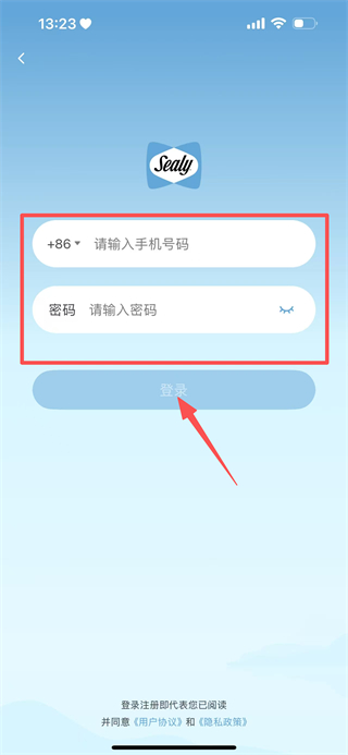 3、在密码登录界面,填写手机号码和密码,点击登录,完成丝涟智能生活账号的登录操作。