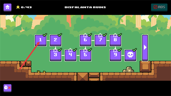 2、进入【DISFALANTA-RUINS】关卡页,选择标有数字1的关卡按钮,即可进入对应的关卡对局。