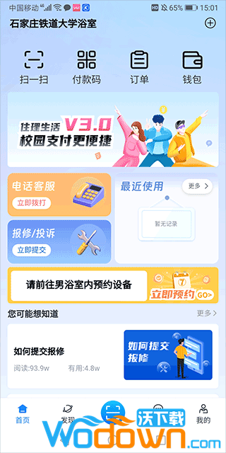 - 扫码使用:连接设备后即可使用洗浴、洗衣等服务