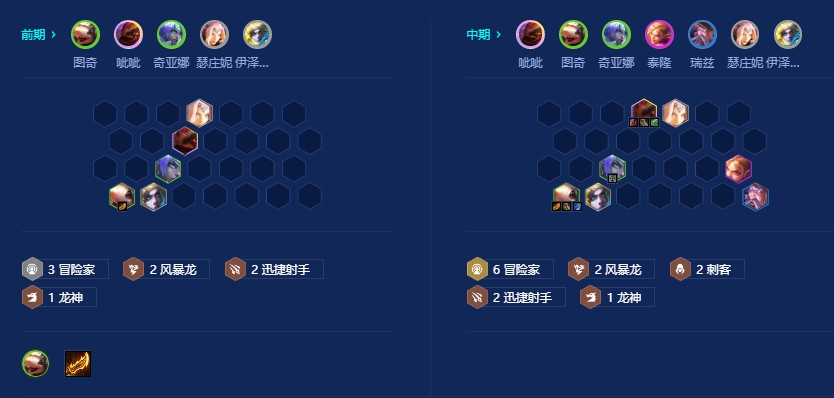 本篇为大家分享的是金铲铲之战巨龙之巢赛季的阵容推荐,本篇推荐的是8冒险家2风暴龙2刺客的冒险图奇阵容,这个阵容适合新手,组建简单,但缺点也很明显,后期容易伤害不足,建议尽量拿装备符文打中期节奏。