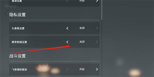 4、找到【赛季数据设置】,将其关闭后别人就看不见你的战绩了。