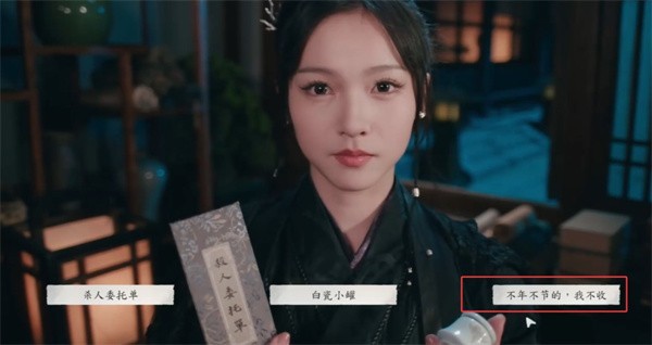 选择【不年不节的,我不收】。这个选项是后续推动阿宁线的关键,不可错过。