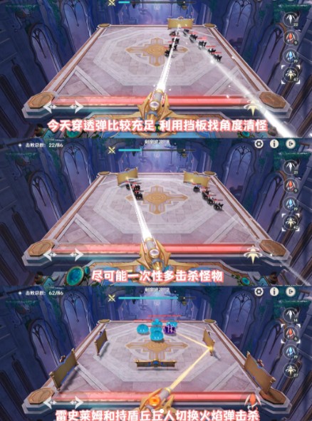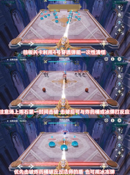 第二关:可能会出现一些具有特殊能力的敌人,如具有护盾的敌人或能够反弹炮弹的敌人。对于具有护盾的敌人,可以先使用冻结炮弹冻结敌人,再使用贯穿炮弹穿透护盾进行攻击;对于能够反弹炮弹的敌人,可以使用反弹炮弹来反弹敌人的攻击,同时注意躲避敌人的反弹攻击。
