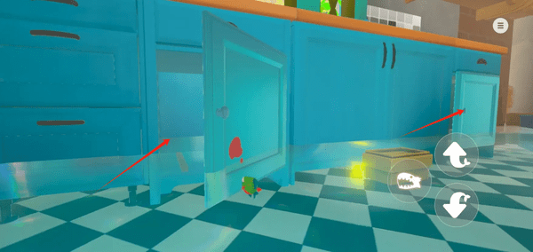 下面待红色油漆的柜子拉开,咬坏水管让水继续蔓延,右边的柜子是面包