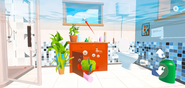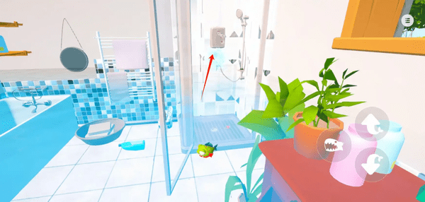 往这个位置走,到盆栽那边会有鸟强行把你扔进旁边房间的浴缸里
