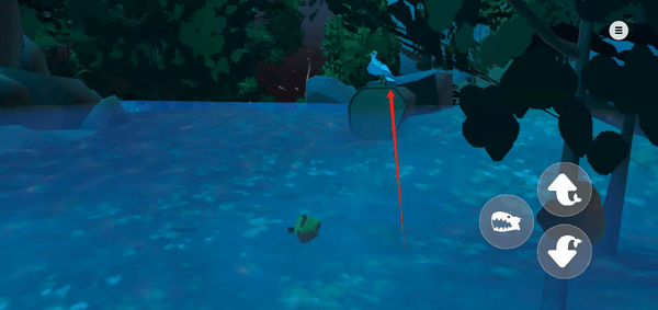 跳起来咬它,它就会带我们飞出去,关掉技能就能落到河里,本关结束。