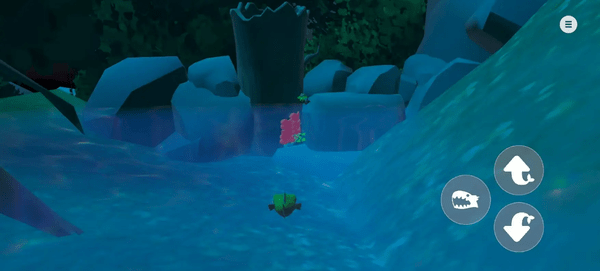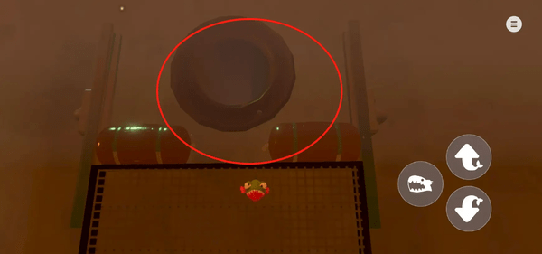 沿着河道走后,在这里会遇到一块拦路的木头,咬掉木头上面的苔藓,然后进入木头再咬掉另一边的苔藓即可出去