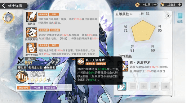 技能带灼烧,50%高级法术连击,后面可以转前排1号控制位置