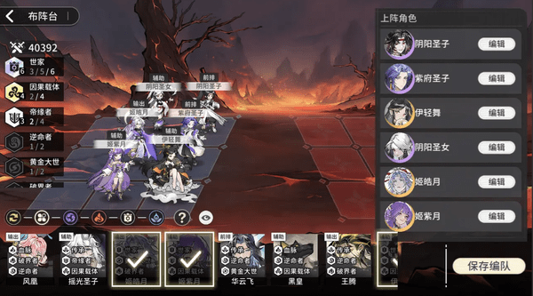 ②世家阵容:养成比较难,3个SR都吃星,缺少AOE吃SSR群攻技能书,偏向PVP,2个前排很肉