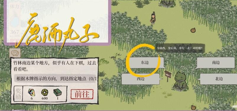 3、最后选择东边,即可根据木牌指示的方向,到达指定的地点,