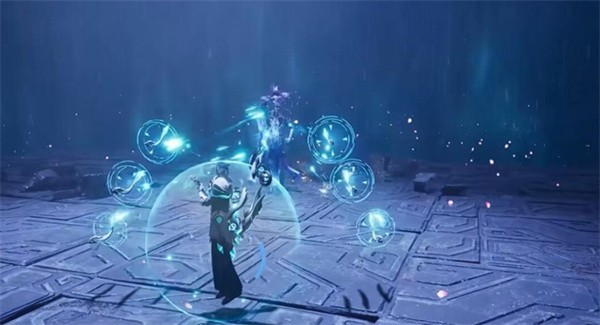 场景会出现机关护盾,必须躲入其中规避伤害。