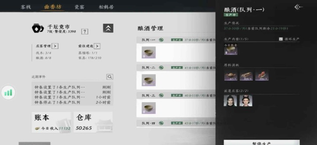 7个二级餐桌(备席)每日拉满热卖的一酒一菜,按每2h销售7酒7菜算(六级备席技能的时间)