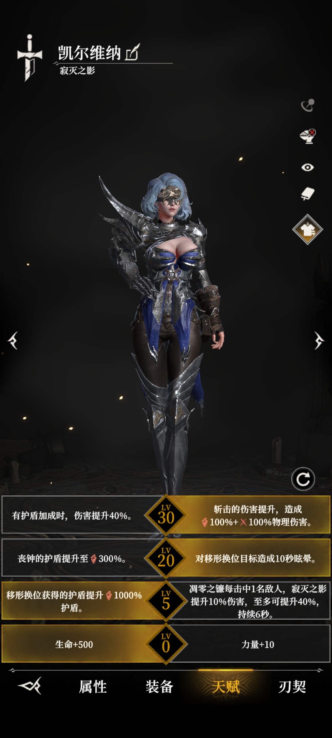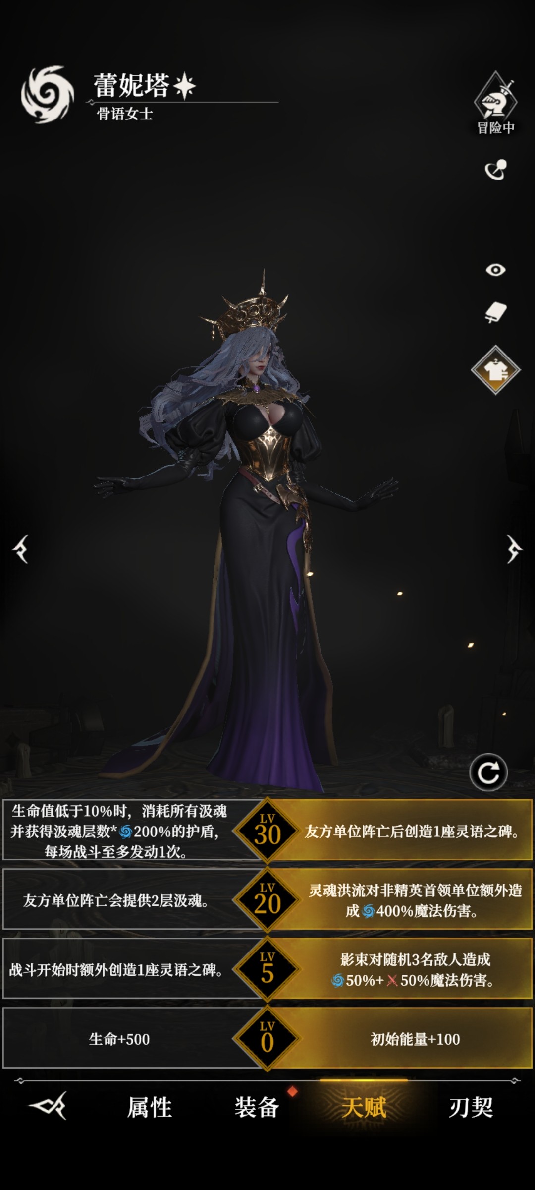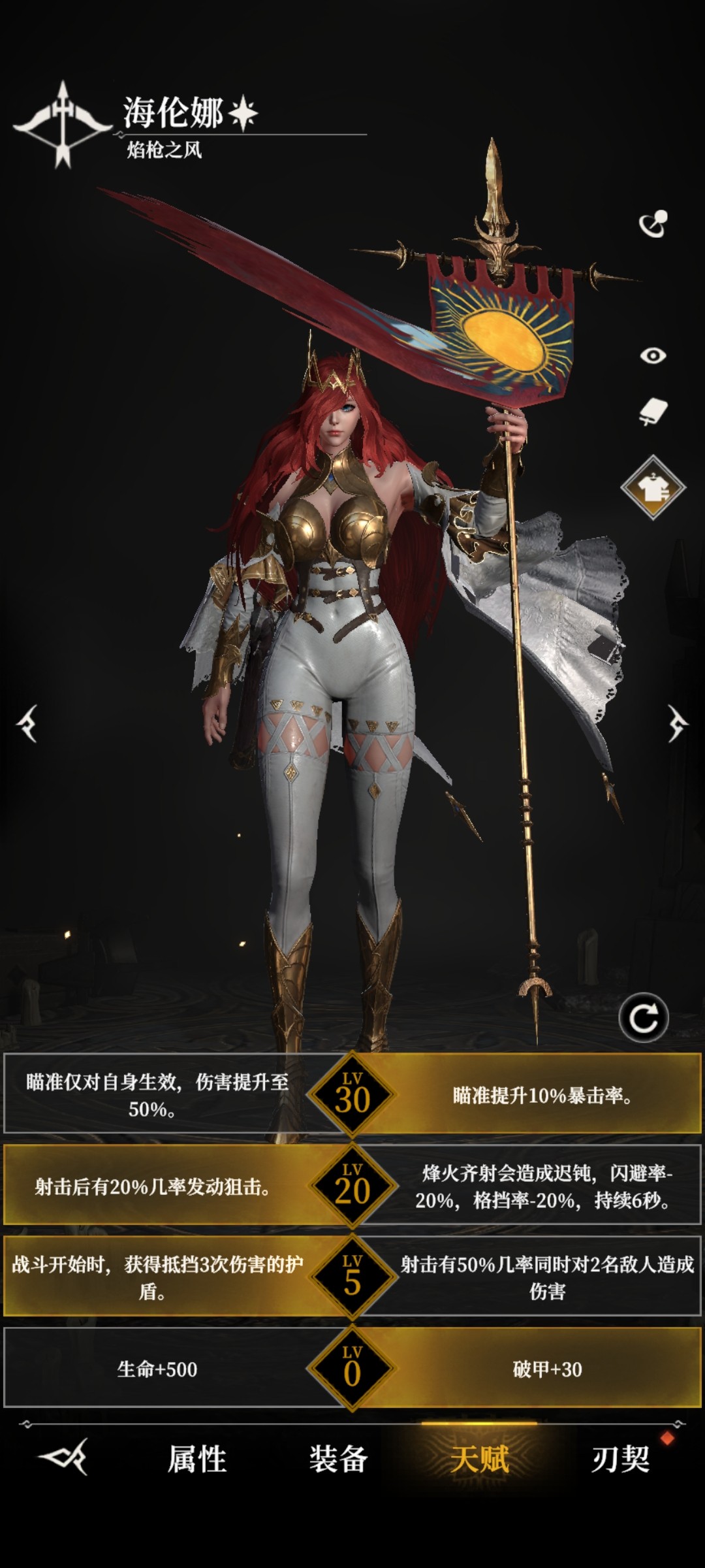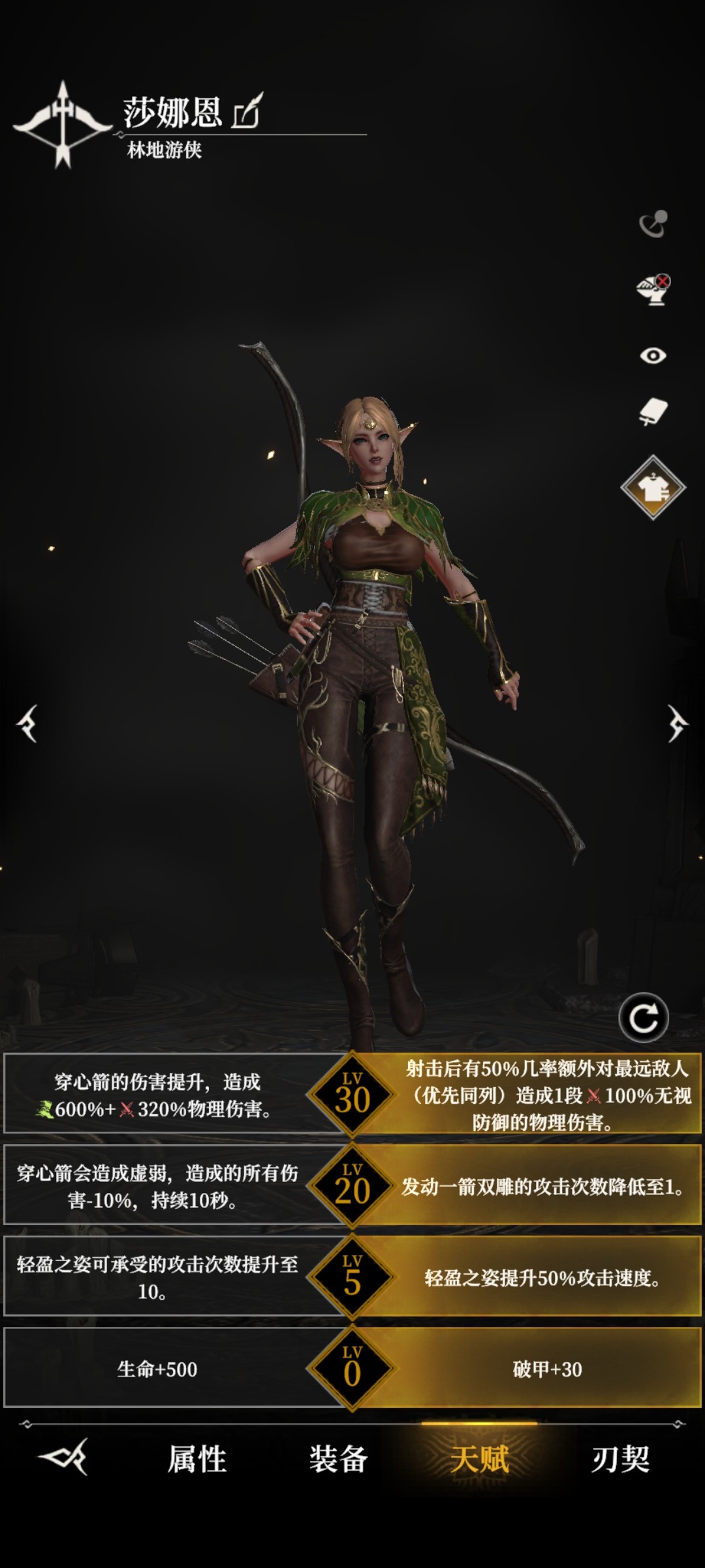 常规输出,右边的五级天赋和独特的减伤机制使她成为推图爬塔的好手。20级左边天赋的减伤和菲欧娜一样,只有在一些特殊boss使用。30级天赋右边打群体,左边打boss。