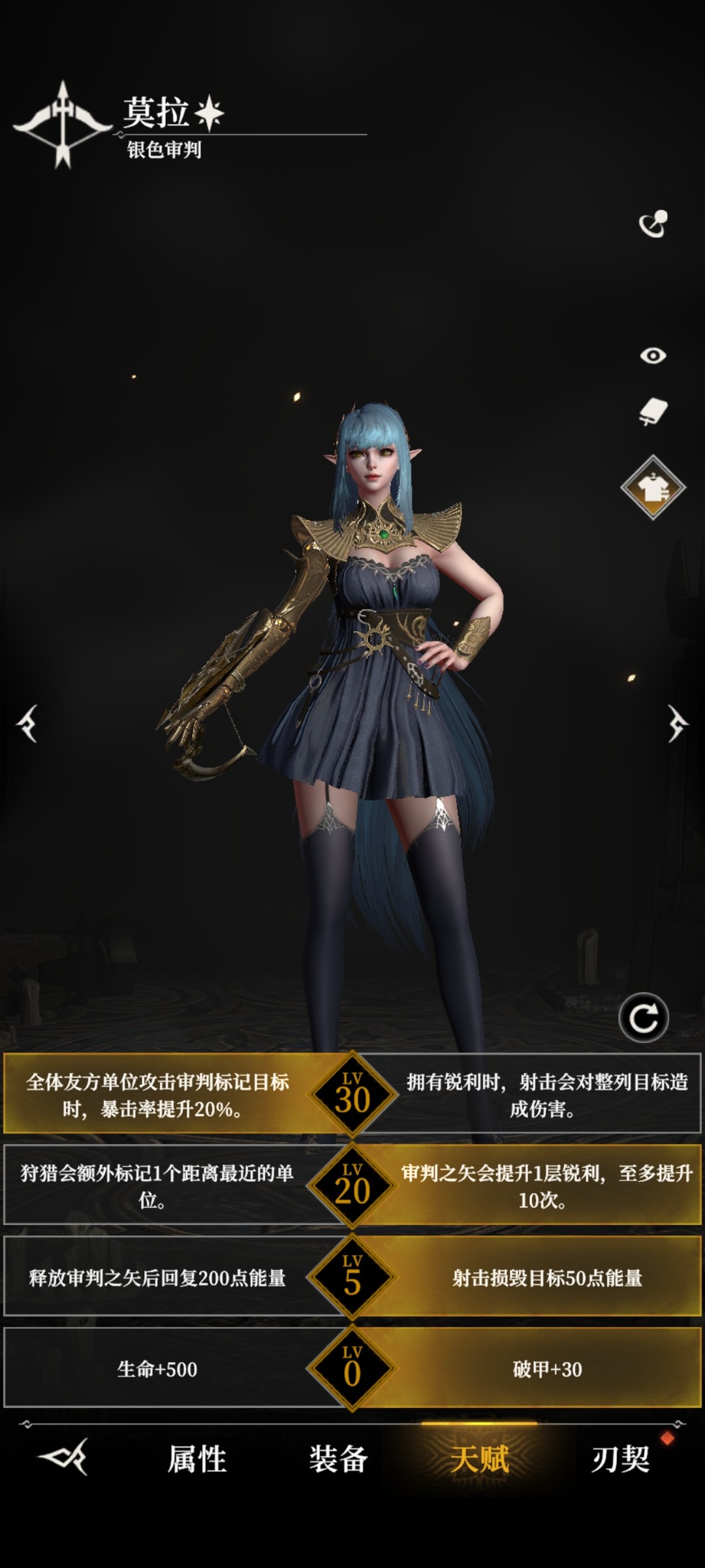 功能性输出,拥有游戏唯一的退条机制,一般打boss用,单体输出也很强。30级左边天赋更是能给全队更加20%的暴击