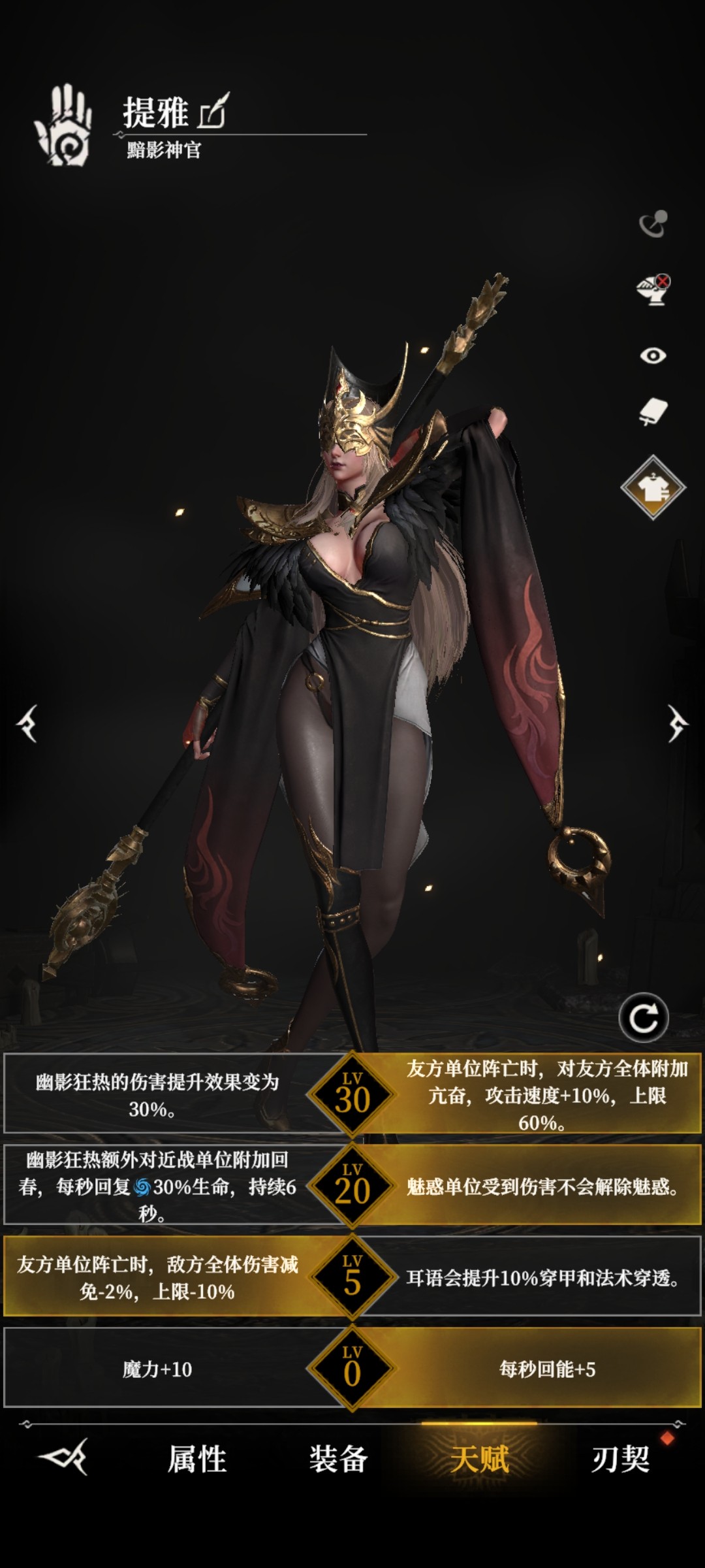 功能性辅助,开局控制一次,5级天赋三次抗伤,20级天赋概率眩晕,30级天赋全队加伤加暴击。