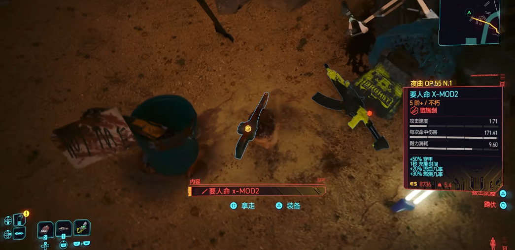 要人命还支持武器改装,若技术属性足够,可安装增伤插件进一步提高输出。推荐战术为:先通过平A叠加流血,待敌人进入燃烧状态后再追击,清敌效率远高于单纯硬砍。尤其面对赛博疯子等高血量单位,穿甲与燃烧的组合效果显著。沿途可能遭遇流浪者杂兵,可选择潜行避开,或直接使用要人命应对——其穿甲属性对机械义体尤其有效,两层流血即可快速解决敌人。