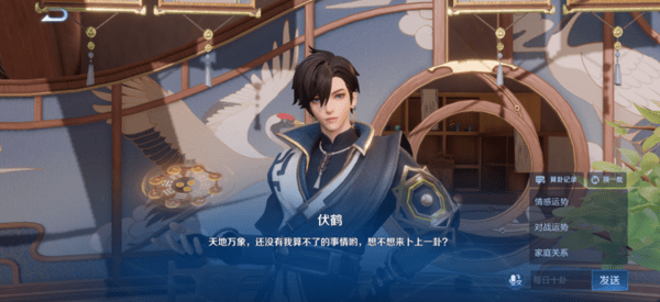 伏鹤作为十周年特邀嘉宾来到稷下学院,他会通过八卦盘感应天地,根据易经六十四卦抽签解卦。玩家可以每天向伏鹤提出最多10个问题,伏鹤将运用八卦之术为玩家答疑解惑。