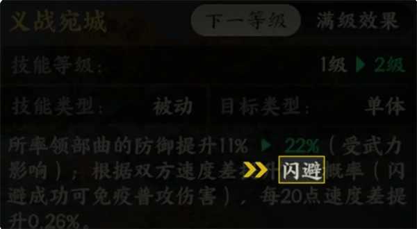 应用场景:概率规避普攻的特性,在战场中比较克制依赖普攻的骑兵部队(如马超、赵云等),免疫普攻伤害也有效保障自身部曲的生存。