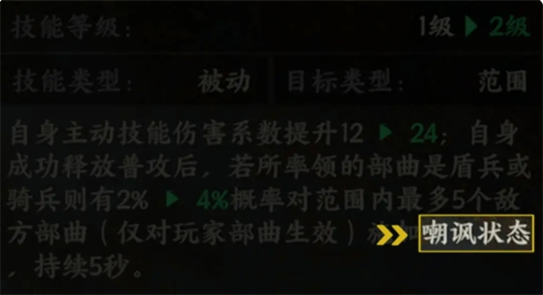 【嘲讽】:强制范围内敌方部曲攻击自身