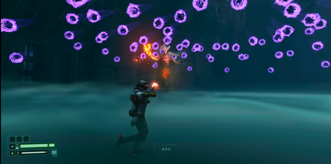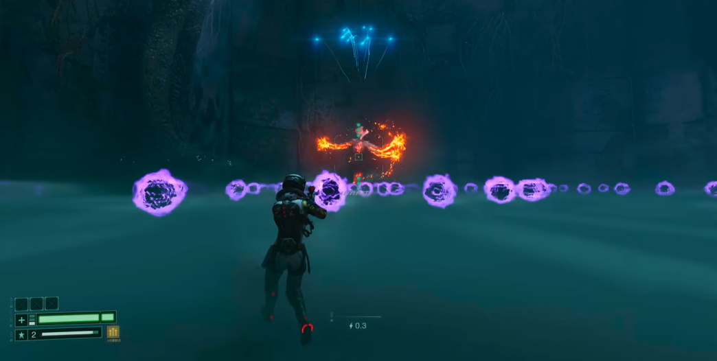 三阶段所有攻击密度提升,紫色能量弹变为三连发,此时不应一味逃跑,看准时机朝子弹方向垫步穿越反而更安全。闪现突进更加频繁,其触发前触手会剧烈抖动,需停手专注闪避,建议预留冲刺技能专门应对。武器优选带电属性的电击枪,若获得带“传送门”词条的觅空枪更佳,二者皆具自动追踪功能,可节省瞄准时间。作战时建议保持中近距离,远程反而更难躲避弹幕。