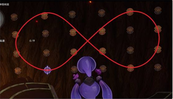 4、对着这里的盾牌射击一下就能使其变红,再次射击则是变蓝。参考下图射击盾牌,用红色盾牌拼出一个无限符号,即可完成解密