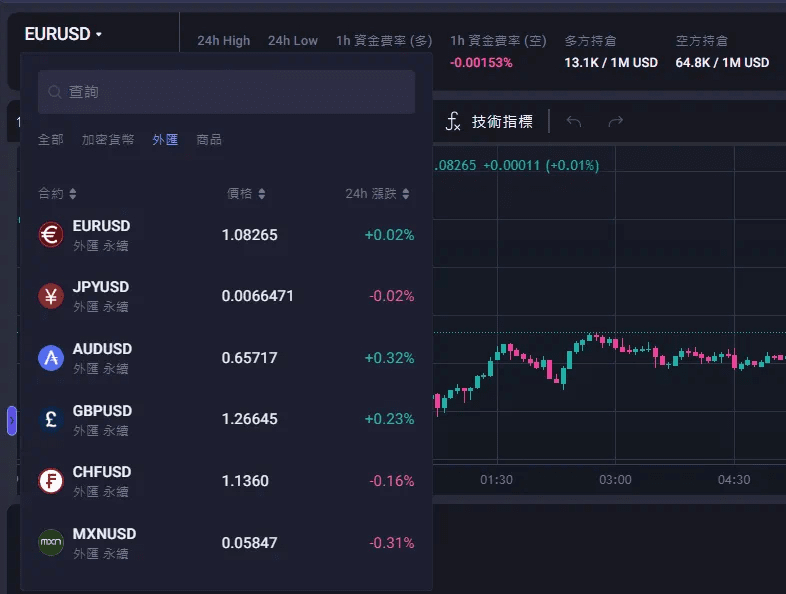 外汇交易(类似稳定币兑换)在APX V2中也是支持的,比如欧元对美元、日元对美元、澳元对美元等交易对,波动率也比较低,可以考虑提高杠杆率并优先考虑该类品种。