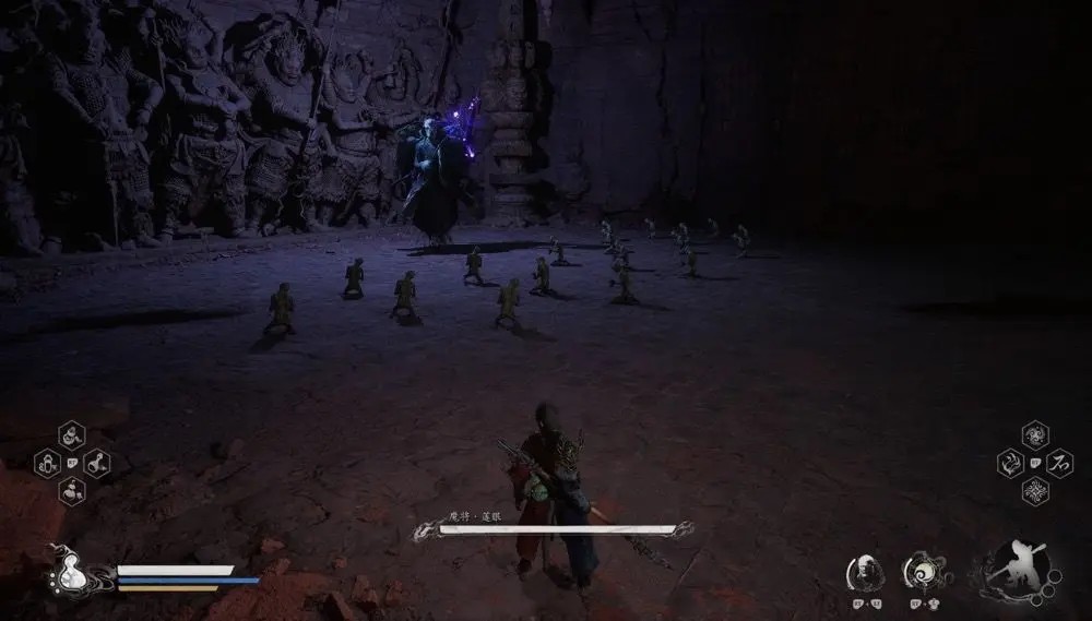 魔将·莲眼:传送到浮屠塔上层,左右各是一条路,往上走,能看到下面很多泥人跪着,这里跳下去