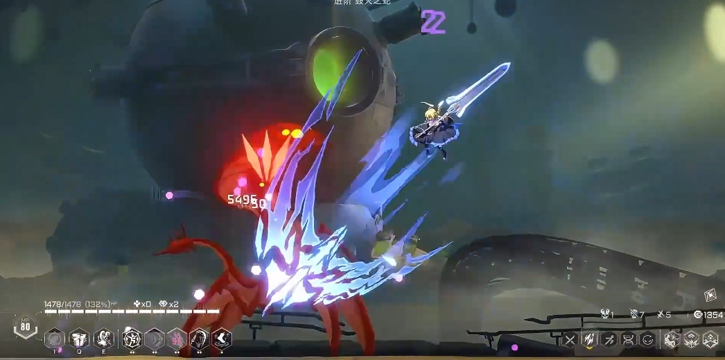 第六个技能现形突刺为直线冲刺攻击,BOSS现身并向固定方向突刺,攻击距离较长但轨迹明确,玩家可向侧方冲刺或跳跃躲避,随后接普攻连击打出伤害。第七个技能双龙卷旋会生成两道旋转龙卷风,覆盖范围较广,玩家需看准风之间的空隙连续跳跃或冲刺穿越,不可强行抵挡。
