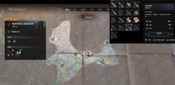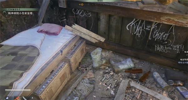 消逝的光芒困兽电击弩图纸的获取方法如图,前往精神病院的岛屿保安塔。