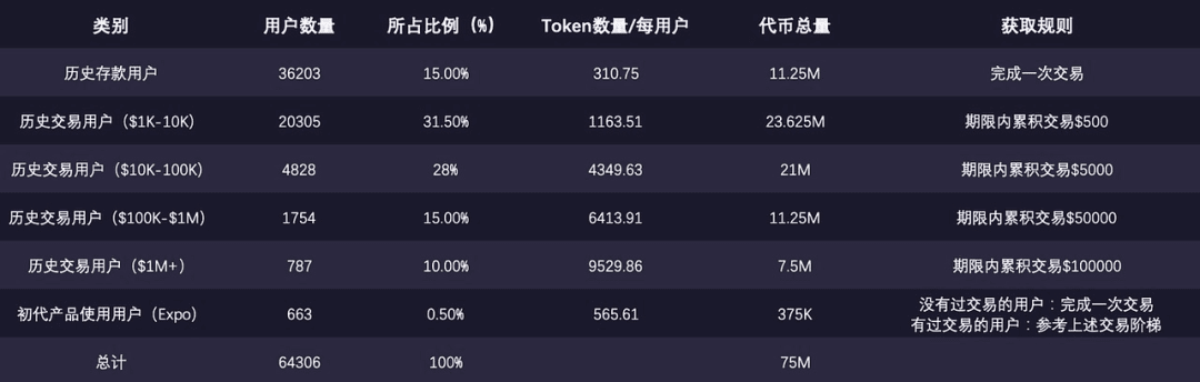 Dydx是一个去中心化的衍生品交易平台,和他交互的方式有两种:1、存款提供流动性;2、在Dydx上交易。因此他也是基于这两个方式来发放他们的空投。