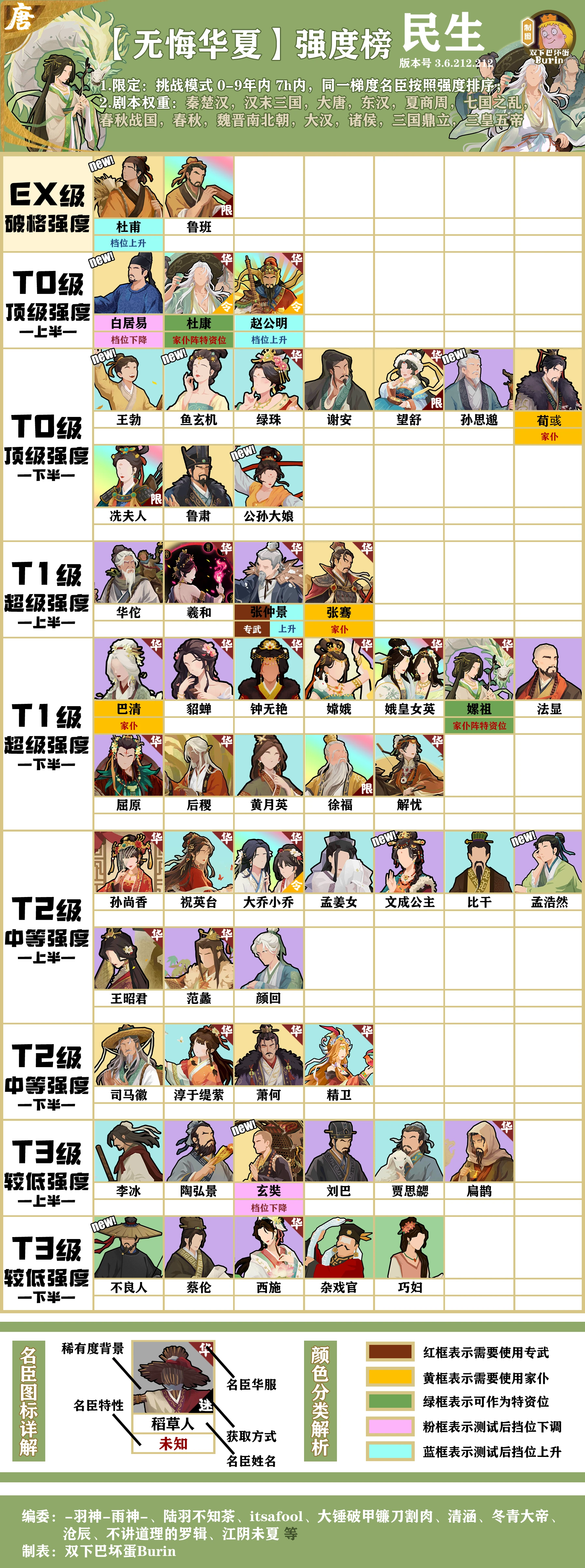 1. 榜单仅供参考,不代表名臣的绝对强度,请以副本需求和阵容搭配选择名臣;