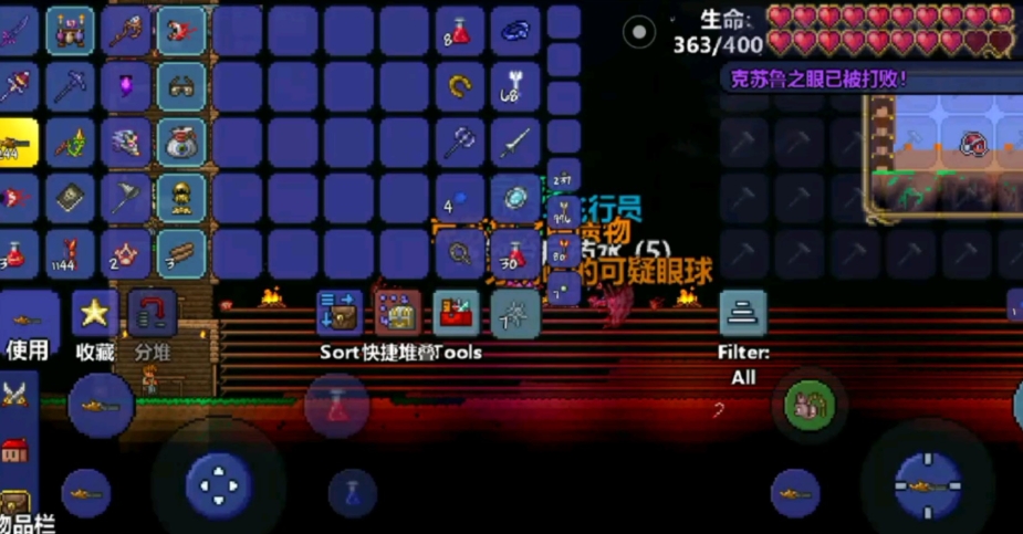 在收集过程中需注意:恶魔之眼仅在夜晚生成,且玩家生命值与防御较高时出现频率会提升。新手建议配备铁级或更高武器与基础护甲后再进行刷怪。另外,合成祭坛无法用普通工具破坏,只能使用后期获得的圣锤进行处理,因此合成时只需靠近即可,无需担心误毁祭坛。