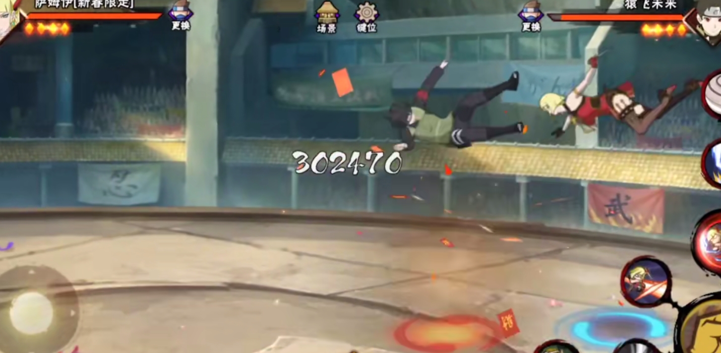 新春萨姆依的普通攻击共分为6段。前三段均可击退敌人,第四段会向前突进,命中后造成击飞与击退效果。第五段攻击可将敌人击飞,且具备扫地效果;最后一段平A会为敌人附加持续约14秒的红包标记,但无法对倒地目标生效。一技能发动后,她会向前突刺并消失于屏幕,感应到敌人后跃起斩击,造成击飞,整个过程速度较快。
