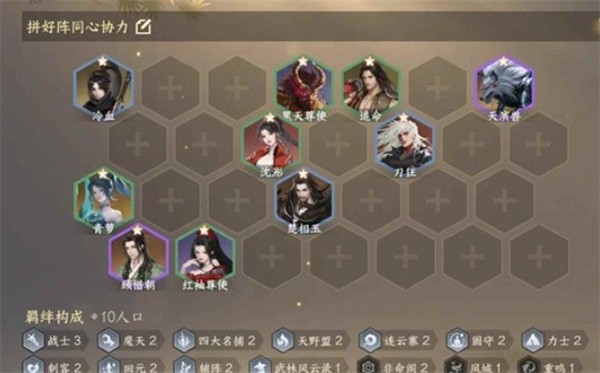 逆水寒自走棋作为逆水寒的一个玩法,玩家需要合理的分配资源才能够升级角色等级,阵容可以自由搭配,强化游戏战斗伤害,选择正确的队伍阵容才可以完成自走棋的战斗任务,掌握战斗节奏运营战斗,还有不同的搭配方式会有不一样的战斗效果,想要强力心悟的玩家可以按照下方的阵容来搭配,希望能够帮助到你们!