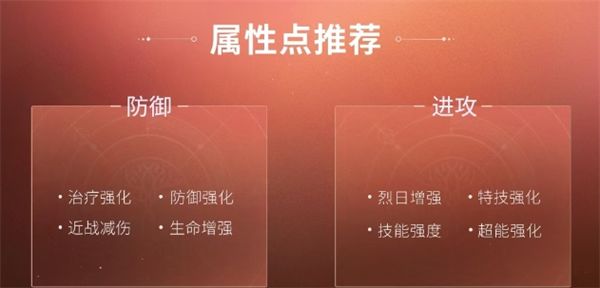 3号位和4号位是增伤神器,推荐烈日增强、技能强度、特技强化和超能强化。
