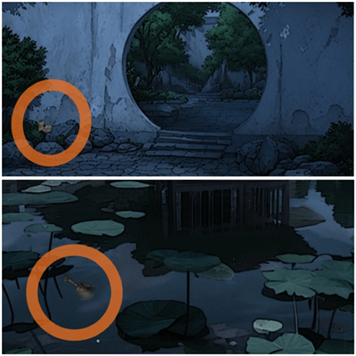 别雅园:拿走园口左面石头上的茉莉花,左面没东西,右面戏台下出现新场景没东西,往前走出现小高能一个女鬼,将娃娃给她,点击水面得到招魂铃。