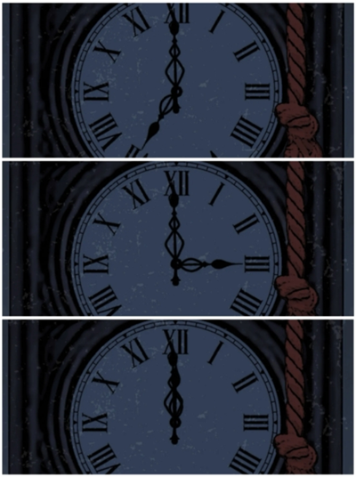 东院:杨修平房间:拿走桌子上的螺丝,将机械图纸放进靠墙坐钟里,拉动掉下来的红绳子,钟每响一次就停到一处时间,分别是七点、三点、十二点,按时辰是戌寅子(后面重开游戏时发现这个时间是随机的,所以只能自己记住三个时间对应的三个时辰)。