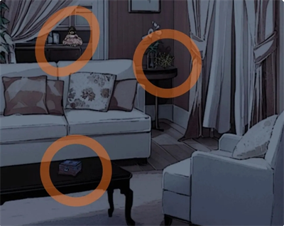 杨婉芝房间:拿走桌子上的满天星和后面台子上放的洋娃娃,桌子上的盒子根据文思堂获得的戌寅子时辰线索打开,得到娃娃的眼珠(这个时辰的答案是随机的,自己对坐钟的时间)。
