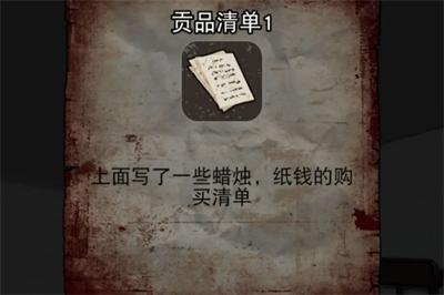 自己回到房间,程贤送来一张贡品清单1,跟他对话: