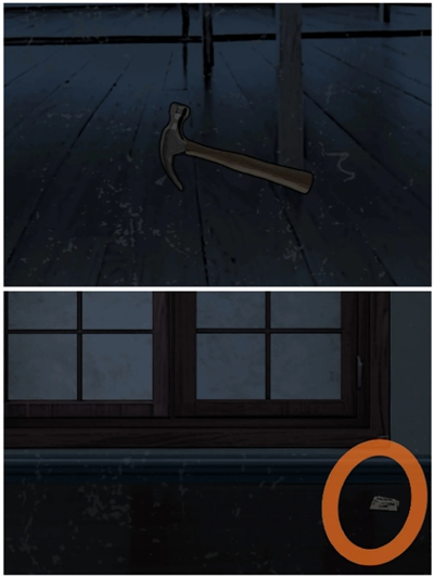 拿起床下的锤子,捡起窗台上的报纸,用锤子打破窗户,有小高能吊死鬼会问问题,回答不一定,得到身份卡,从窗户出来。