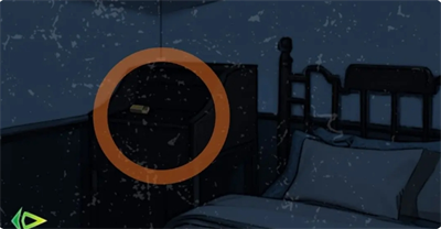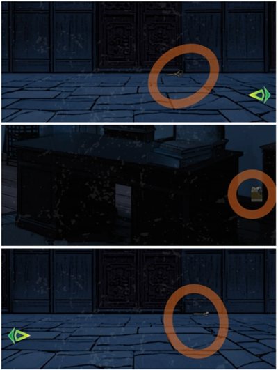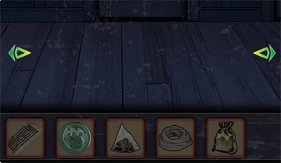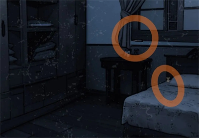 向右进入戏台下的房间,拿取窗台上的胶水和床上的珍珠耳环。