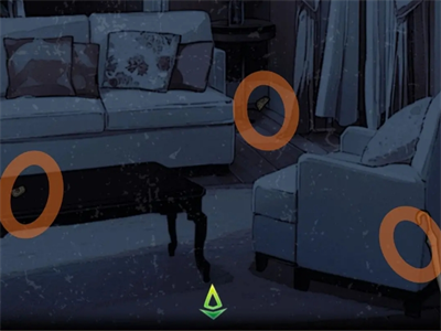 杨婉芝房间:拿起沙发旁边的雨伞,拿取地上的木碎片1和桌子上的木碎片2。