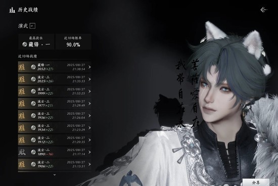 玉玉:花上月令、葫芦飞飞、长生无相、困兽心经(玉玉无盾很脆,困兽给一个盾,玉玉打的是速杀和单挑,但现在无法挑飞强韧,所以上个赛季以来不强了,不过我还是用这个上无我了)