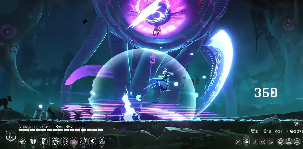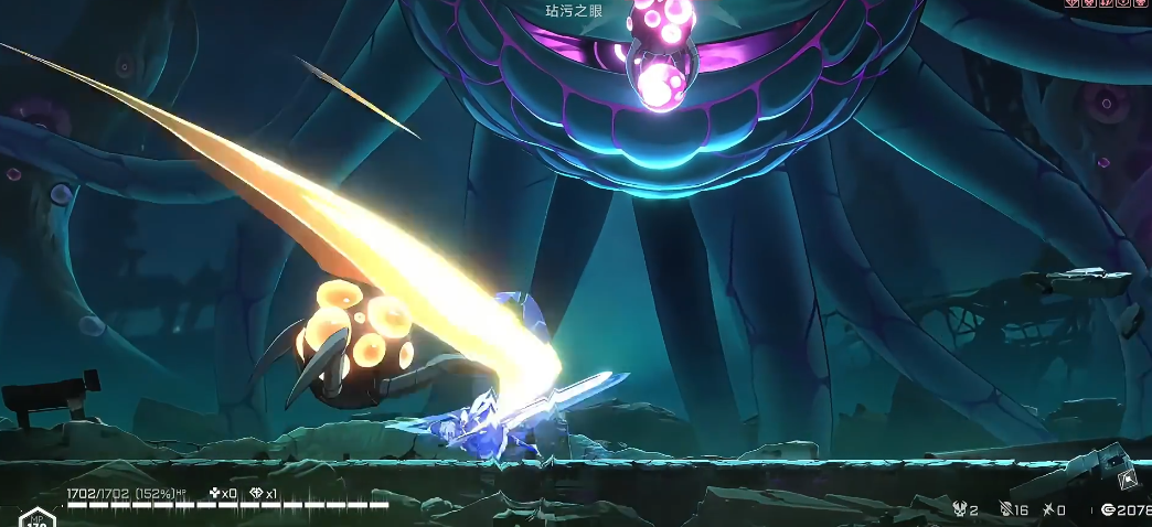 触手横扫是较危险的技能,表现为两根触手从两侧扫过地面。不可硬扛,正确做法是在触手抬起时起跳,并可在空中攻击以补充伤害。如被触手突刺范围锁定,应迅速使用二段跳或冲刺脱离,随后利用其回收时的僵直进行输出,击中多根触手可造成更高伤害。