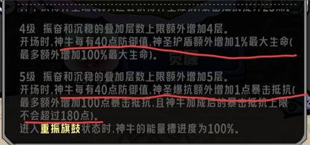 觉醒五的牛堆4000防以后,在防守端神圣嘲讽下会增加100抗暴和100血,4k防要等版本更新才能达到